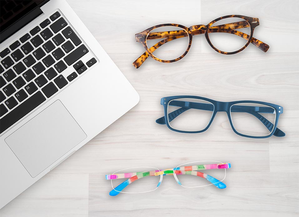 Blue light glasses, available with and without reading correction, reduce the blue light reaching the eyes from all types of digital screens such as mobile phones, tablets and computer monitors. The lenses filter out blue light and may reduce the problems of eye strain and headaches associated with using screens for long periods as well as aid sleep, so are also ideal for use in the evening.