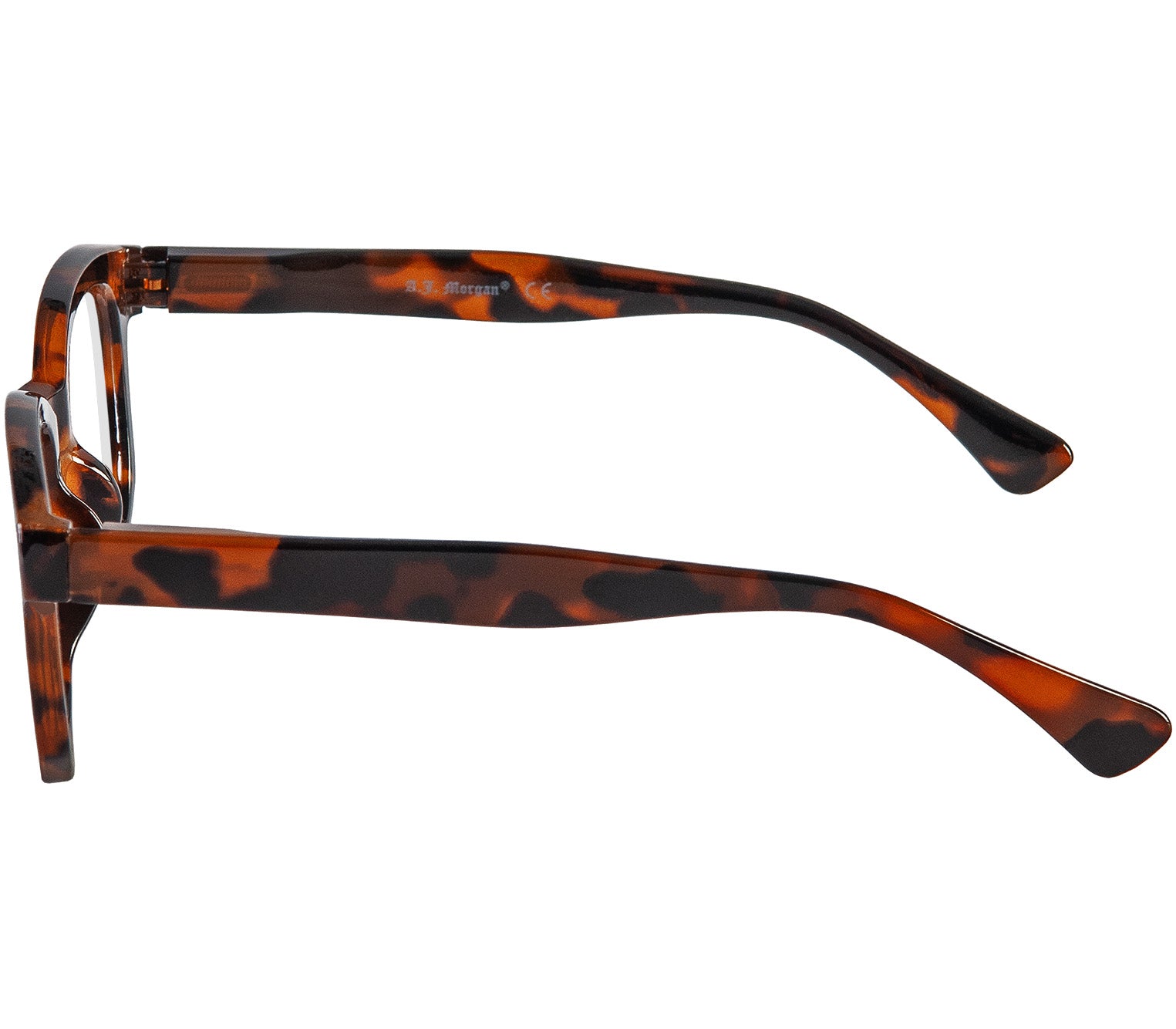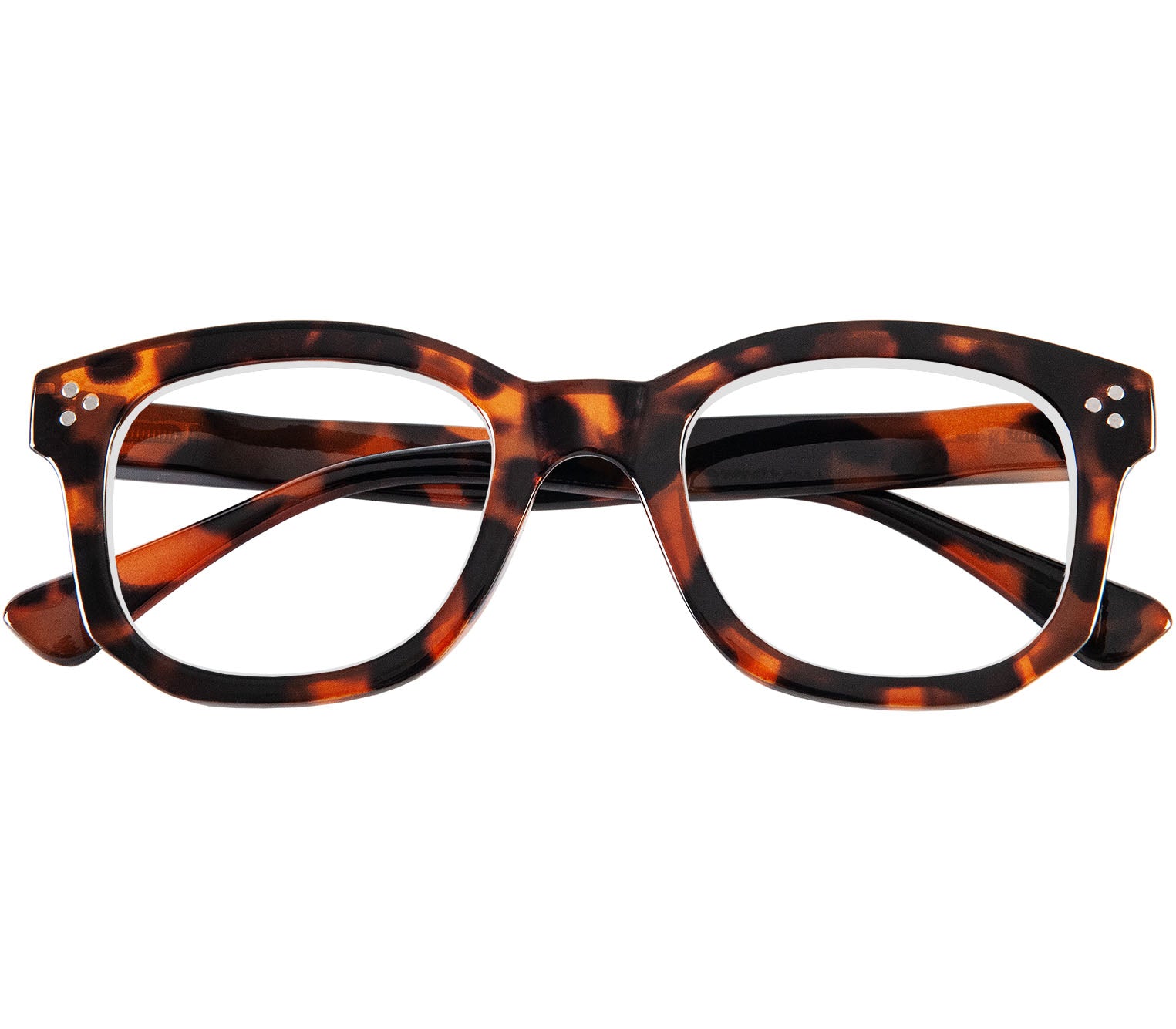 Ultra retro style reading glasses with a chunky tortiseshell frame and well sized oval lenses. Featuring smart triple rivet detailing, a deep glossy finish as well as spring hinges for the ultimate fit and comfort. A matching soft pouch is also included.